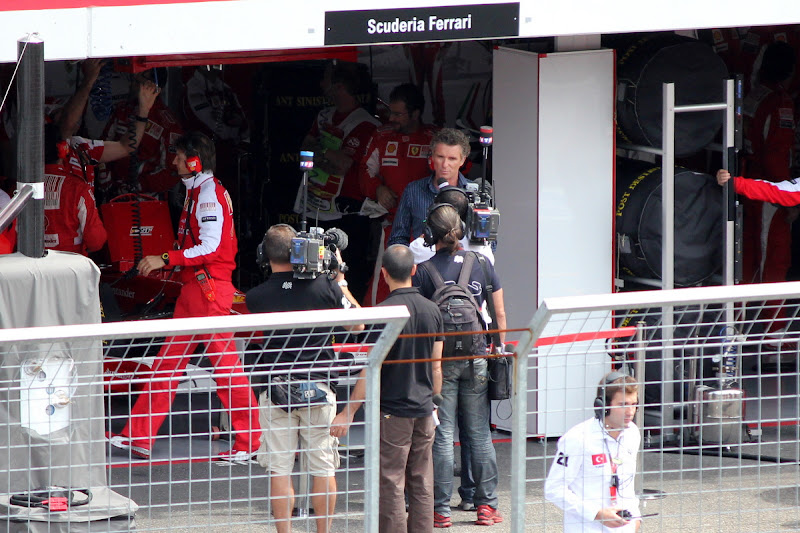 В боксах Скудерии - Дени Броньяр, телеведущий Формулы на французском канале TF1. А как бы хотелось видеть на его месте Марион Жоллес! Такие автоспортивные комментаторы должны быть предметом национальной гордости, ей богу
